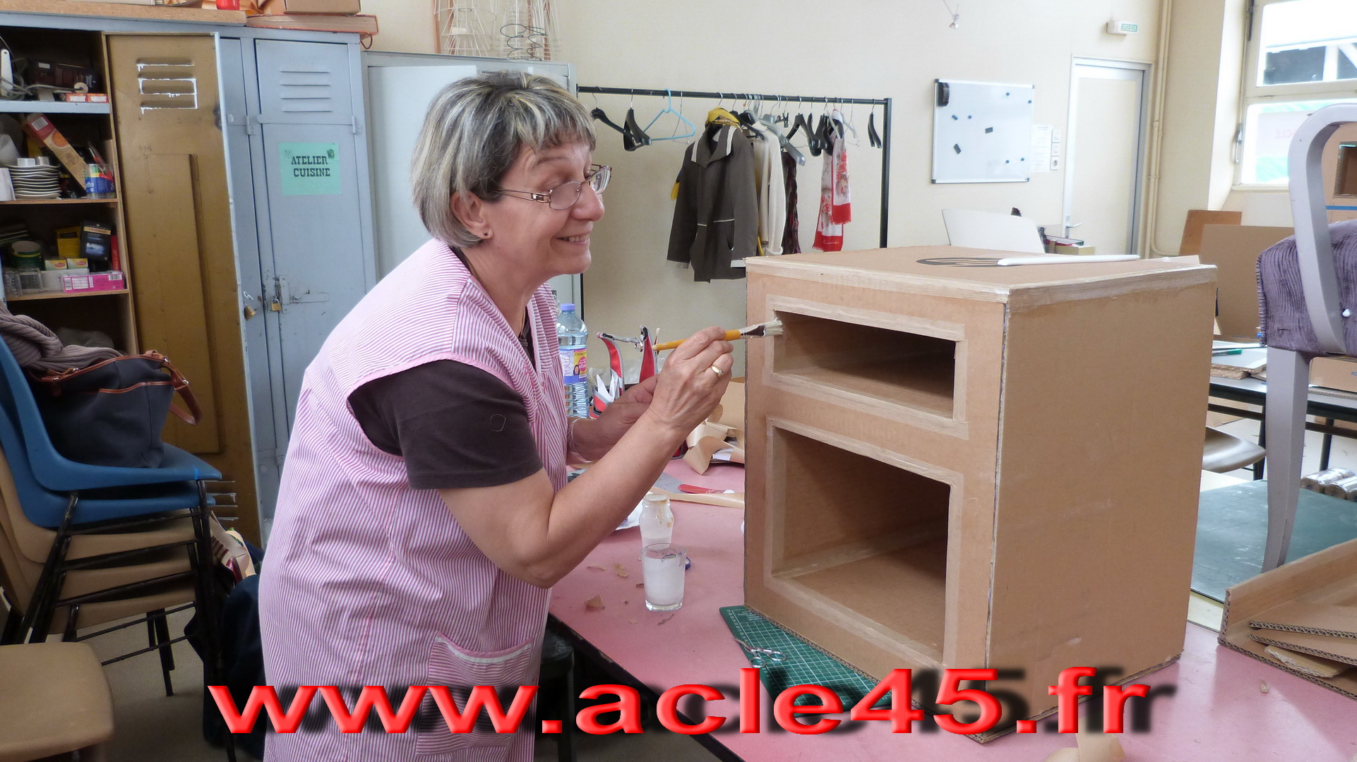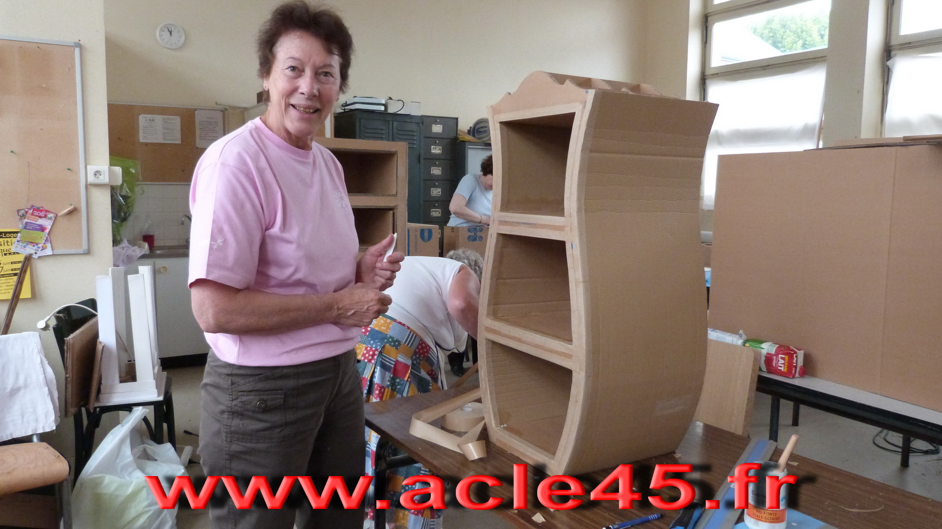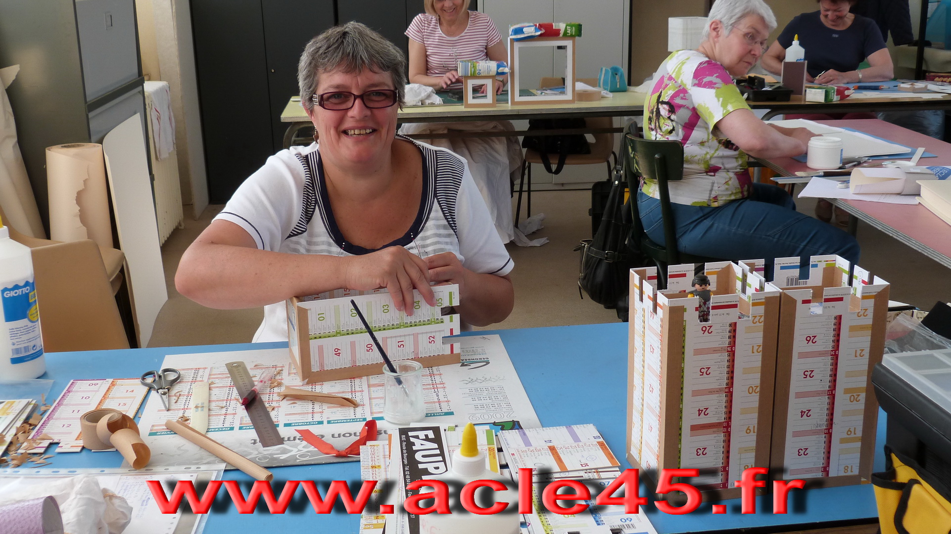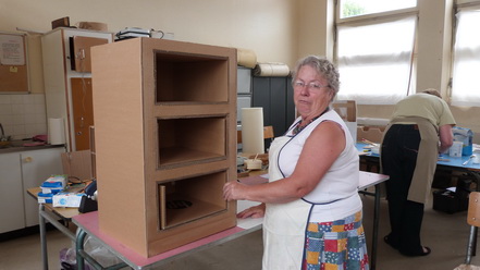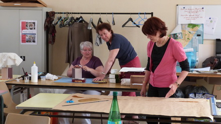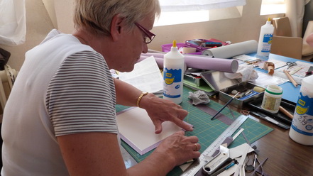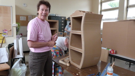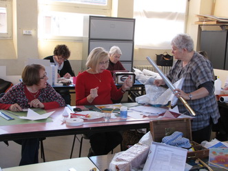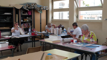 Après le départ d'Odile notre animatrice en Juin 2009, Michèle qui animait déjà avec brio l'atelier abat-jour s'est proposée de reprendre cette activité qu'elle suivait brillamment depuis quelques années. Ce fut un grand soulagement, peu s'imagine tout ce qu'il est possible de faire avec du carton. Venez voir Michèle, vous porterez un autre regard sur cette matière.