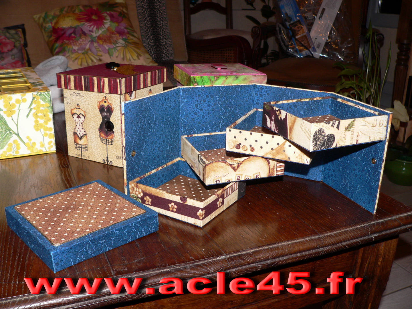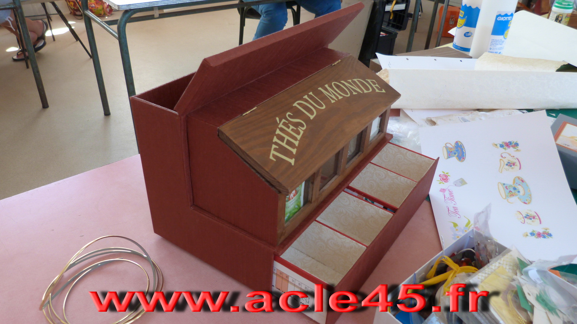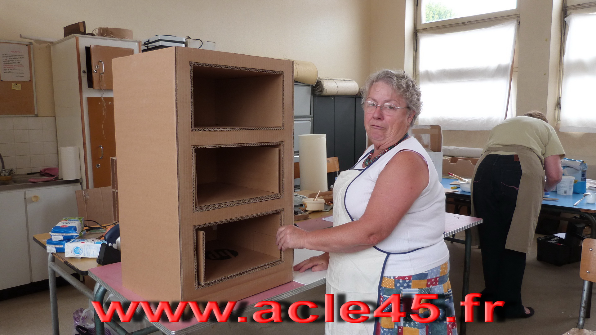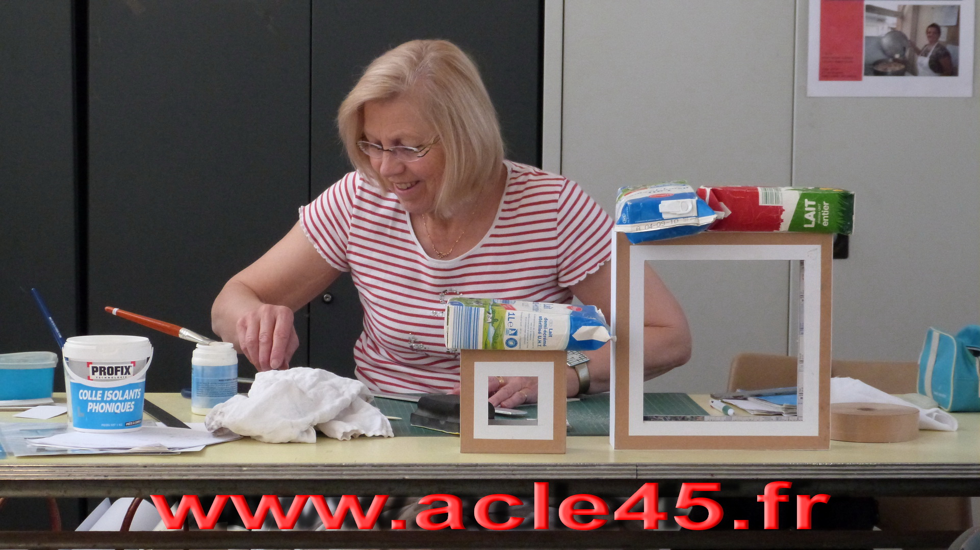 Après le départ d'Odile notre animatrice en Juin 2009, Michèle qui animait déjà avec brio l'atelier abat-jour s'est proposée de reprendre cette activité qu'elle suivait brillamment depuis quelques années. Ce fut un grand soulagement, peu s'imagine tout ce qu'il est possible de faire avec du carton. Venez voir Michèle, vous porterez un autre regard sur cette matière.