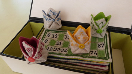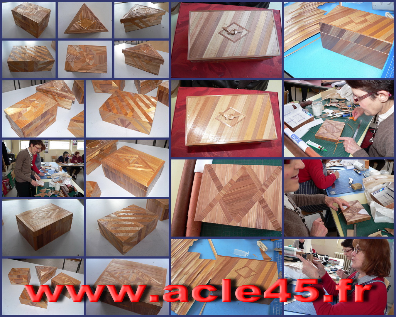 Ci-dessus, au centre, confection de boites en paille, une spécialité de Michèle.