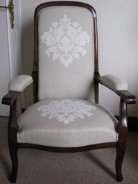 voltaire sur base neuve et un fauteuil médaillon sur base chinée