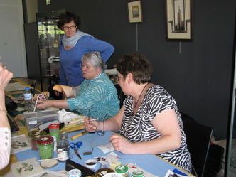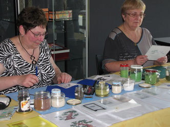 Michèle Tilatti (cartonnage) et Brigitte Dupeu (réalisations en sable
