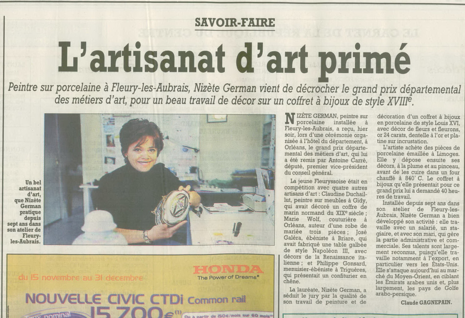 le grand prix départemental des métiers d'art. Cette distinction a bien