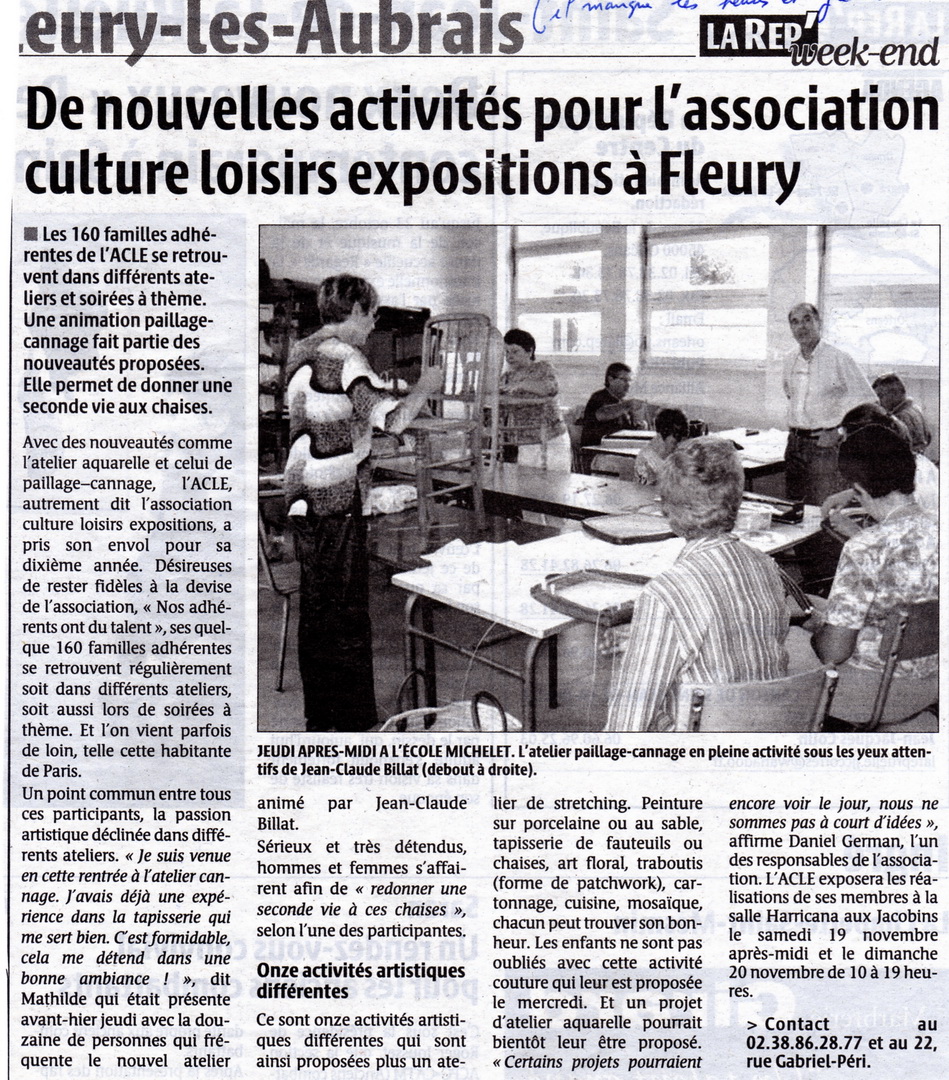 annonce la création de l'atelier paillage et cannage de Jean-Claude